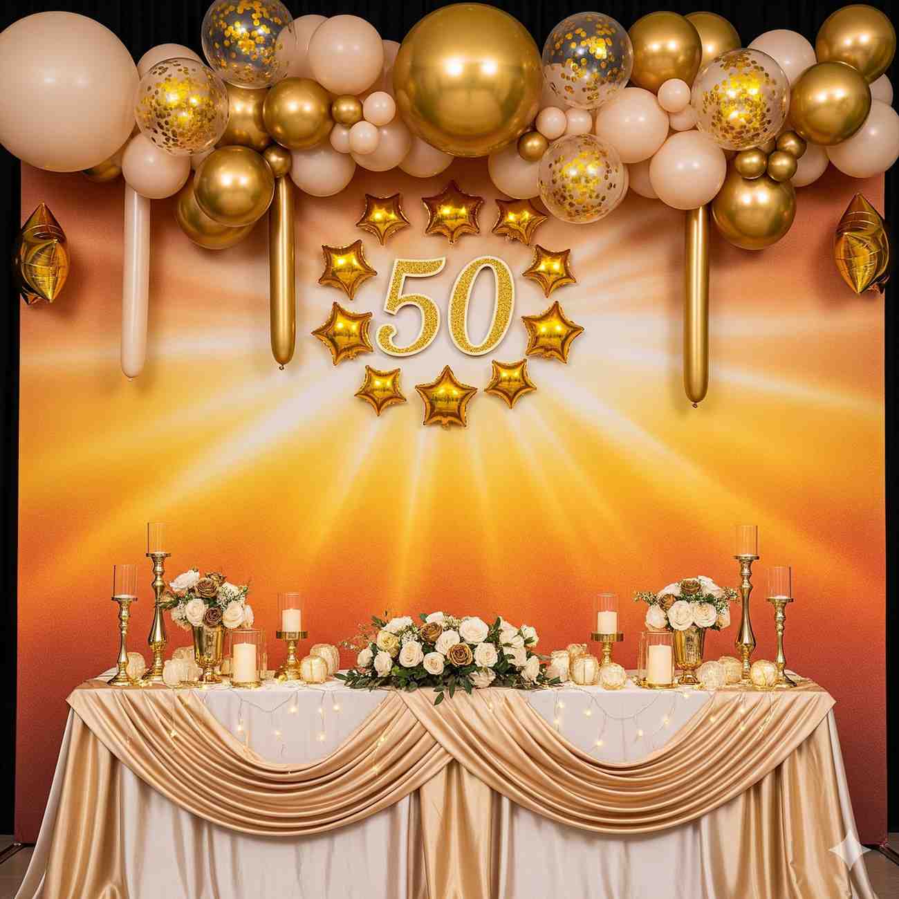 Plan a special anniversary celebration with this gold and blue decor theme.