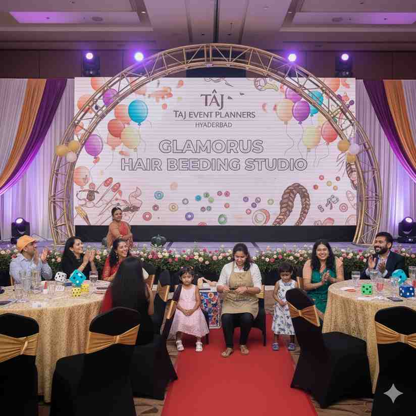 Add sparkle and style to your event with Taj Events Planner Hyderabad’s Hair Beading Services — trendy, fun, and perfect for birthdays, weddings, and parties.