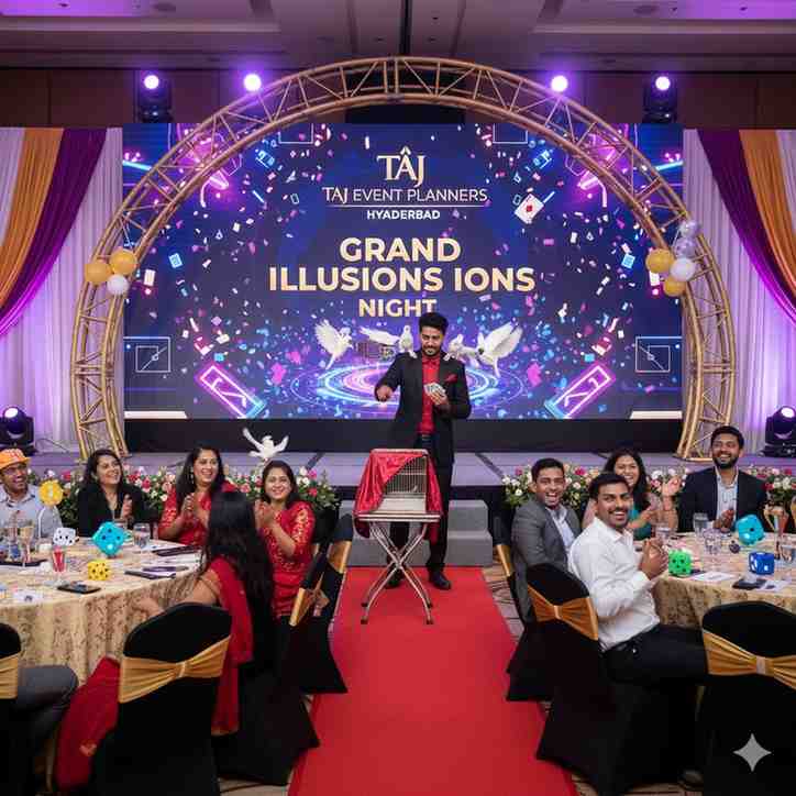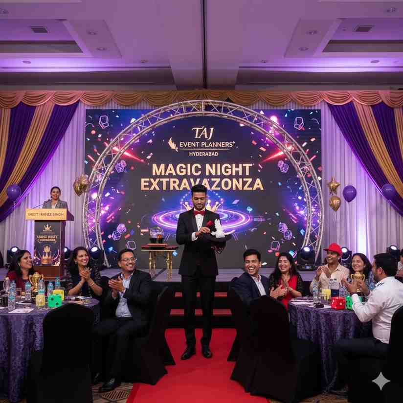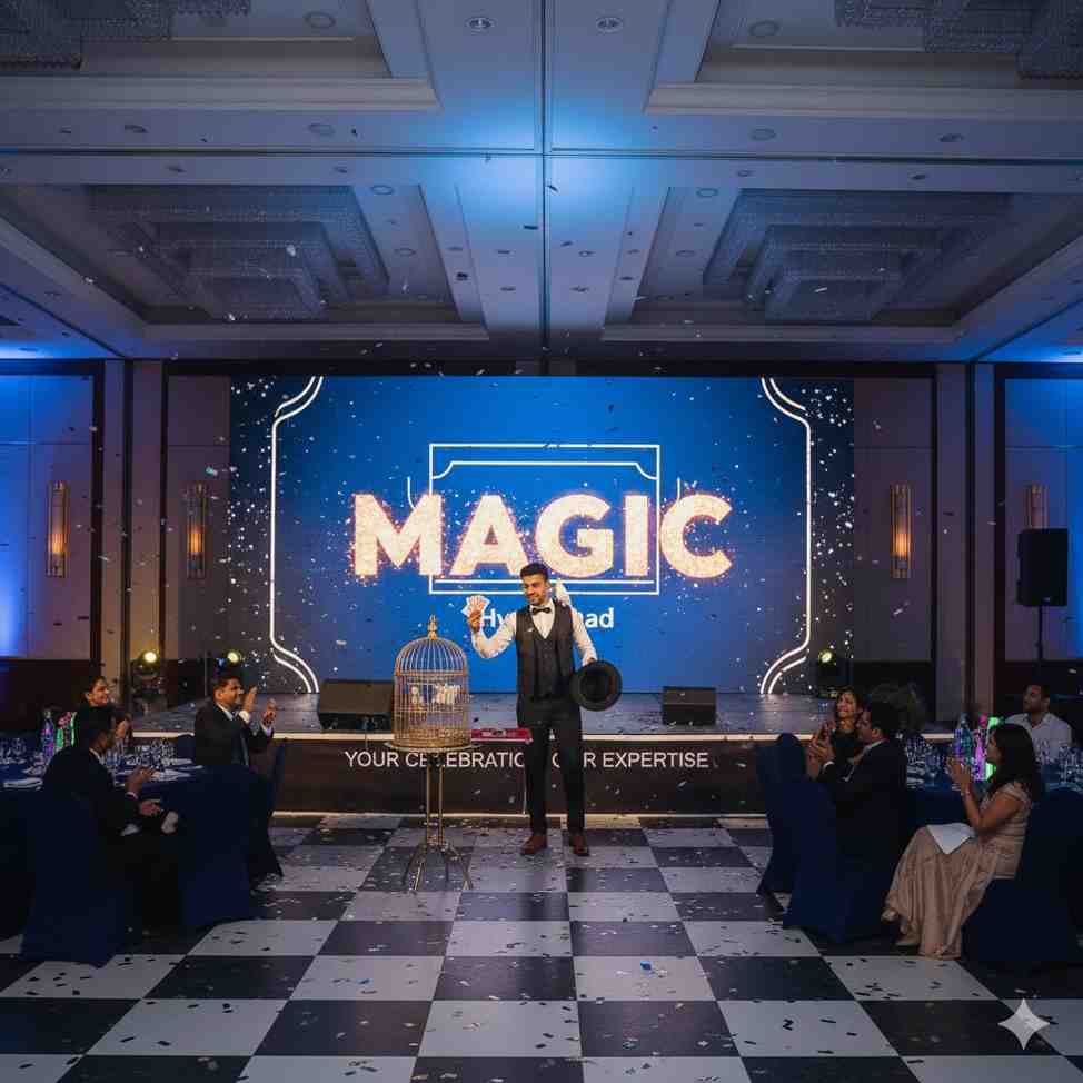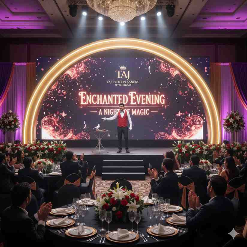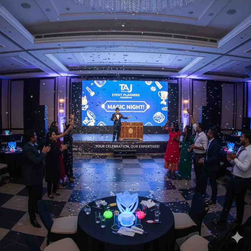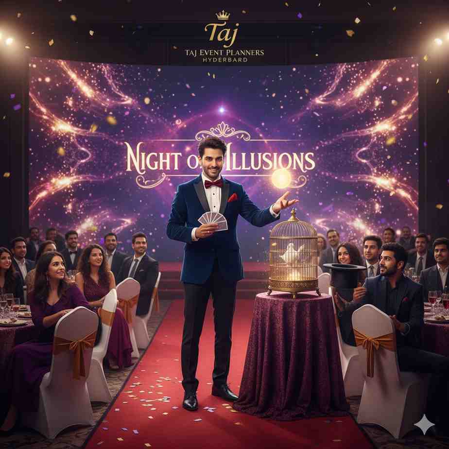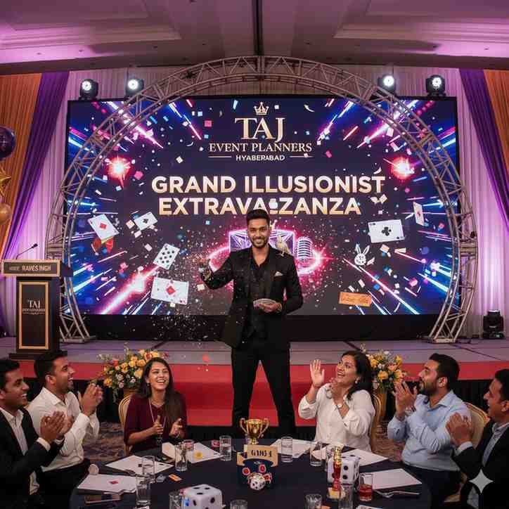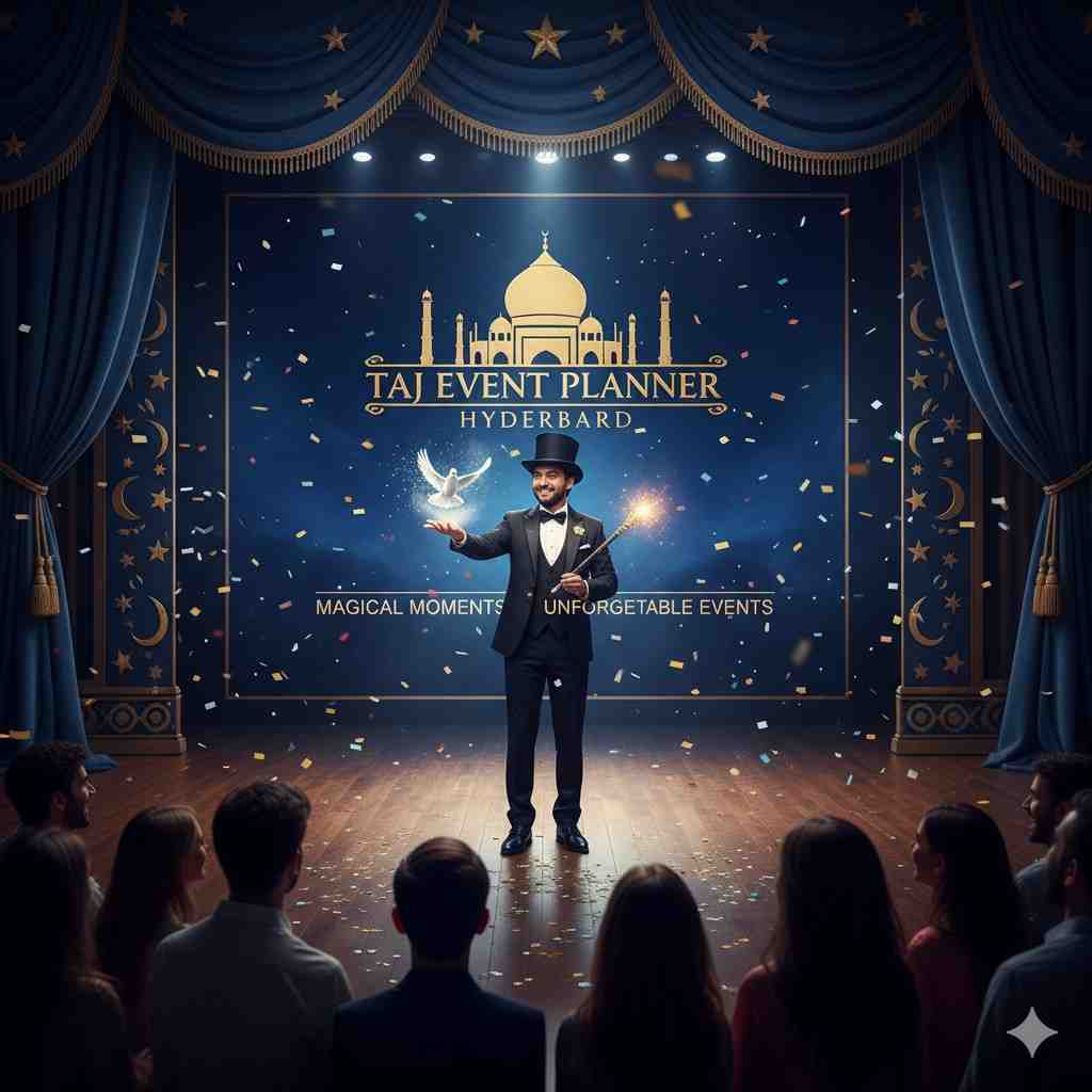 Make your celebration extraordinary with Taj Events Planner Hyderabad’s Magician, where every trick brings joy, surprise, and laughter to your guests.