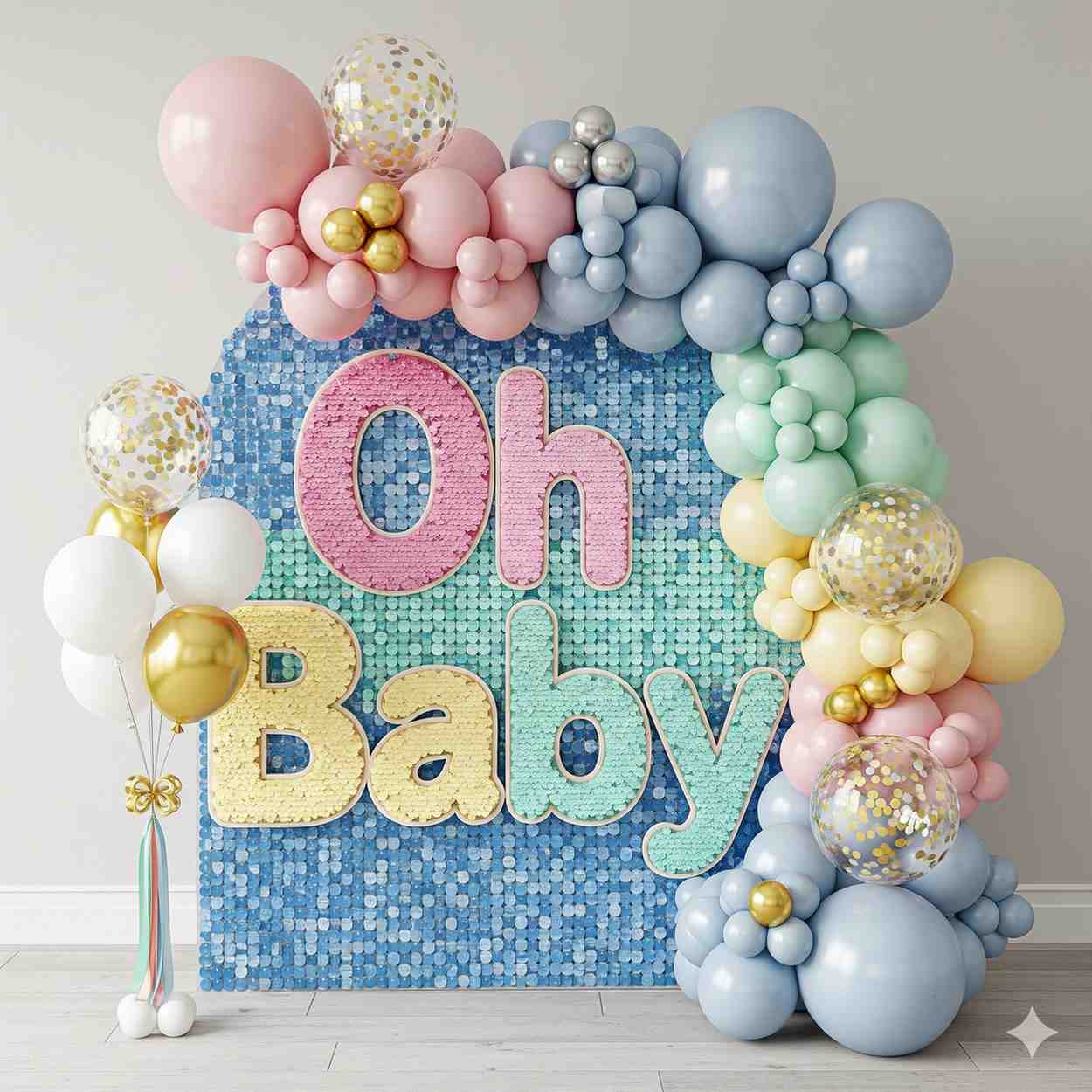 - You can book this shimmery sequin wall balloon decoration theme online from here at a reasonable price.