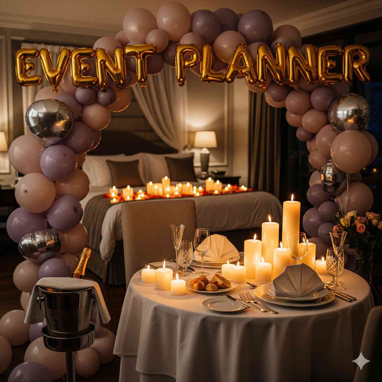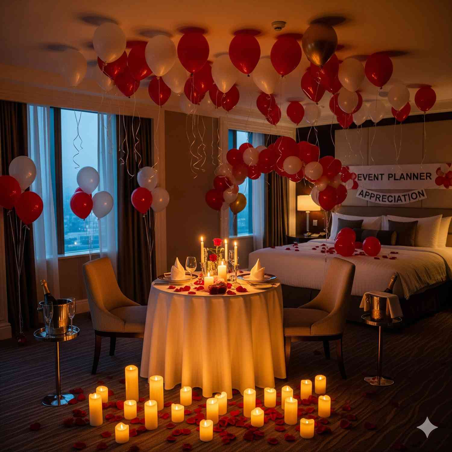 Overnight stay in a Beautifully Decorated Room with Balloons and Rose Petals.