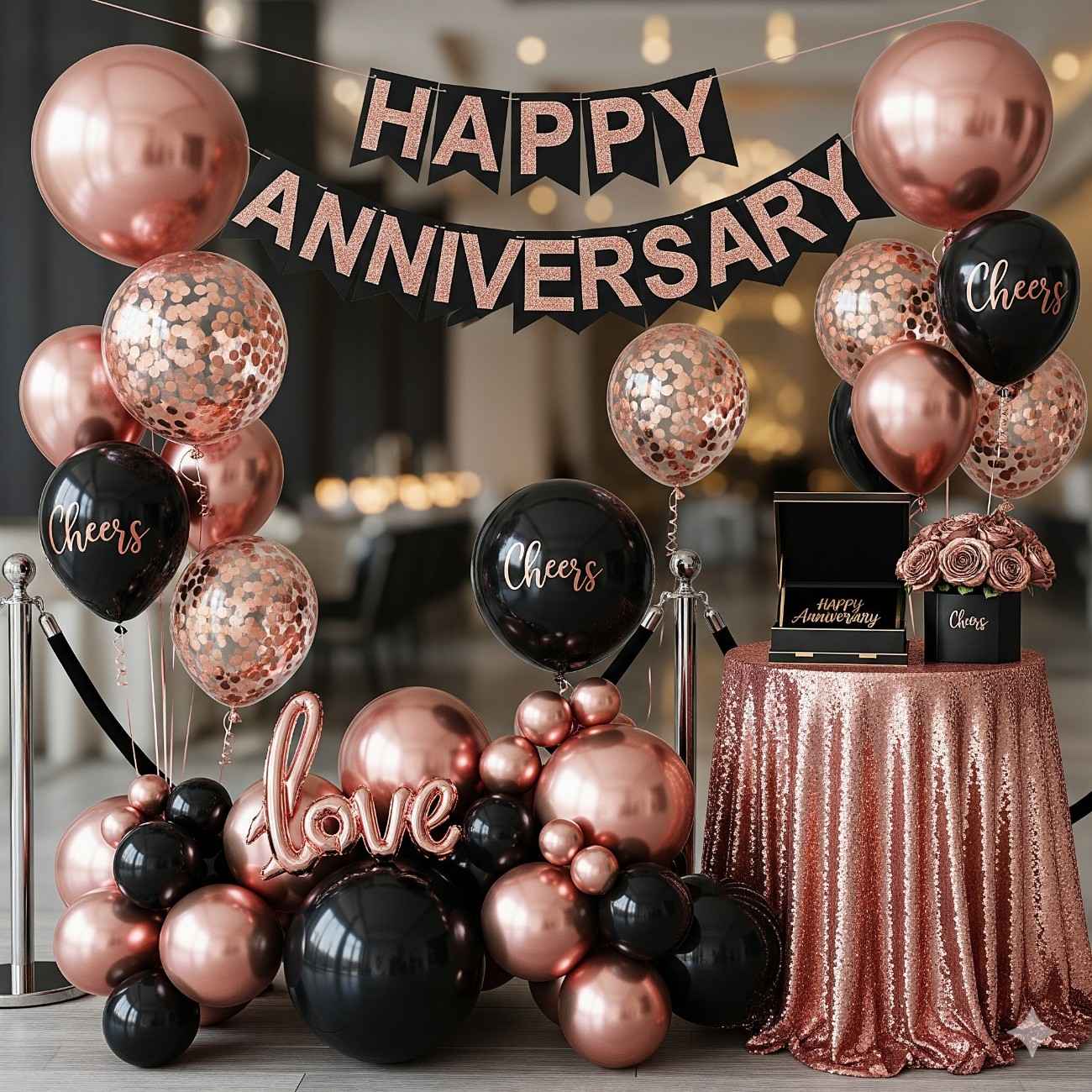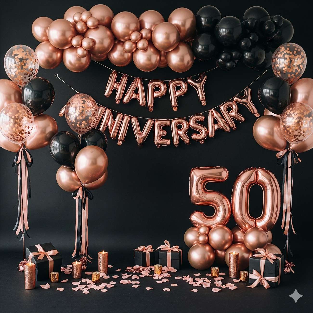 You can easily book this rose gold and black anniversary room decoration online from here.
